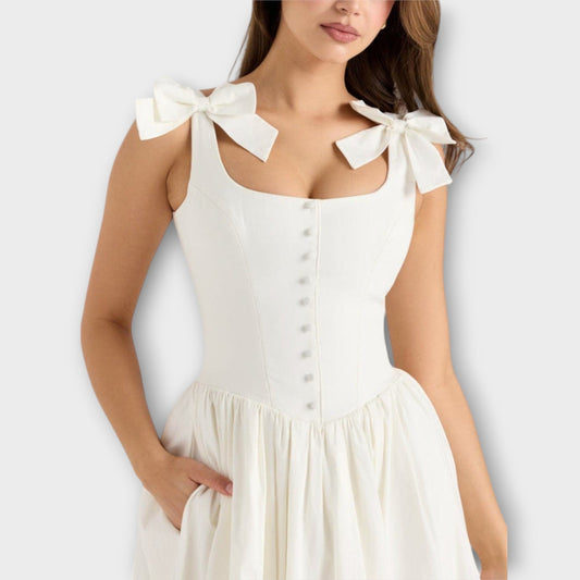 Mira - Striking Single-Breasted Midi Dress with Tie Detail