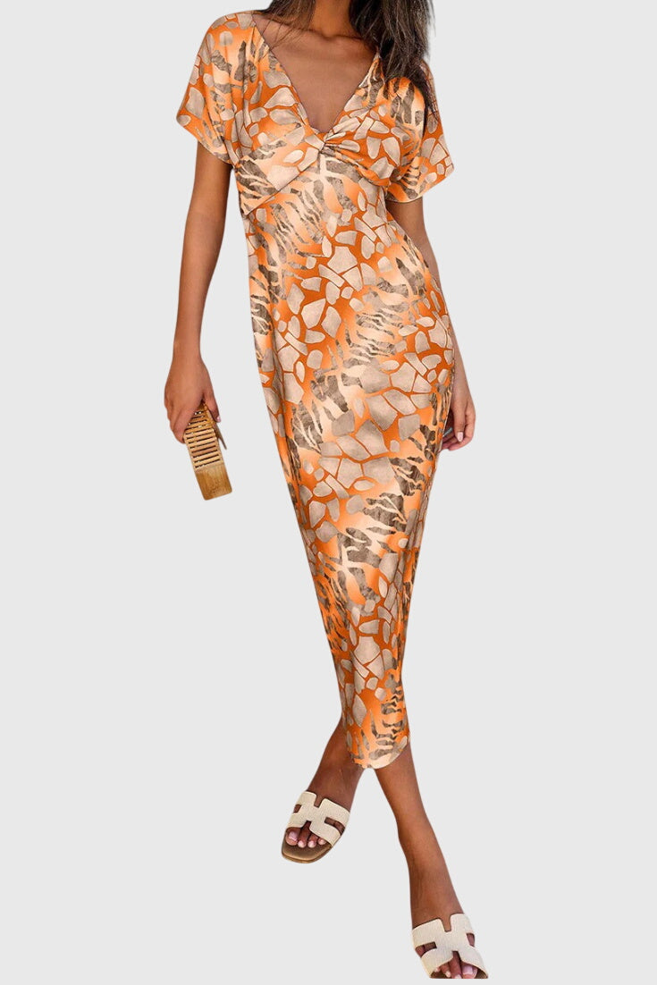 Ainhoa Casual Dress with Front Knot and V-Neck