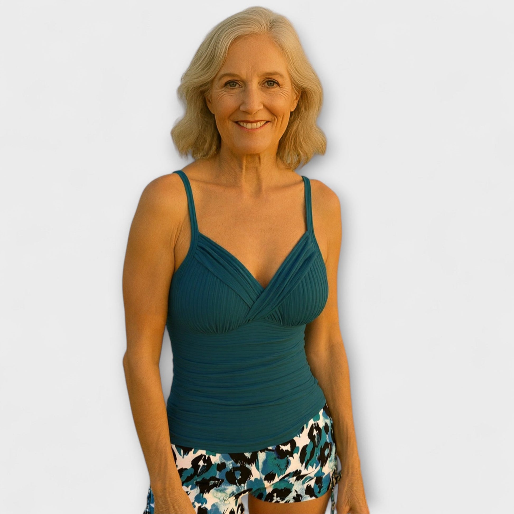 - Supportive Comfort: Featuring adjustable shoulder straps and a stylish V-neckline, this tankini offers gentle support without uncomfortable underwires, ensuring all-day ease.