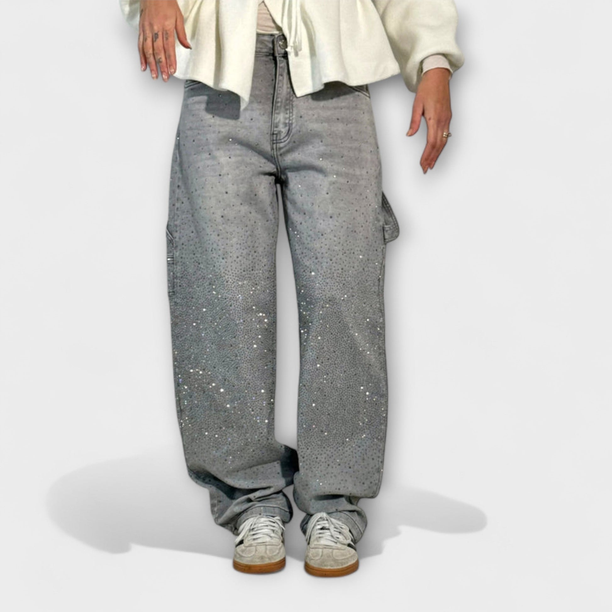 - Stylish Balloon Fit: The unique balloon design flatters every body shape, creating a chic silhouette that stands out. The eye-catching Super Shine jewel applications add a touch of glamour, making these jeans perfect for any occasion.
