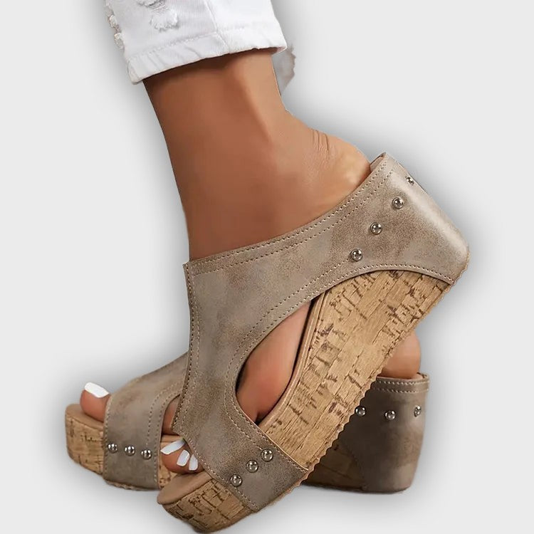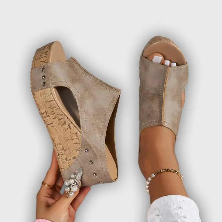 Faith - Elegant Rubber Sole Buckle Wedge Sandals