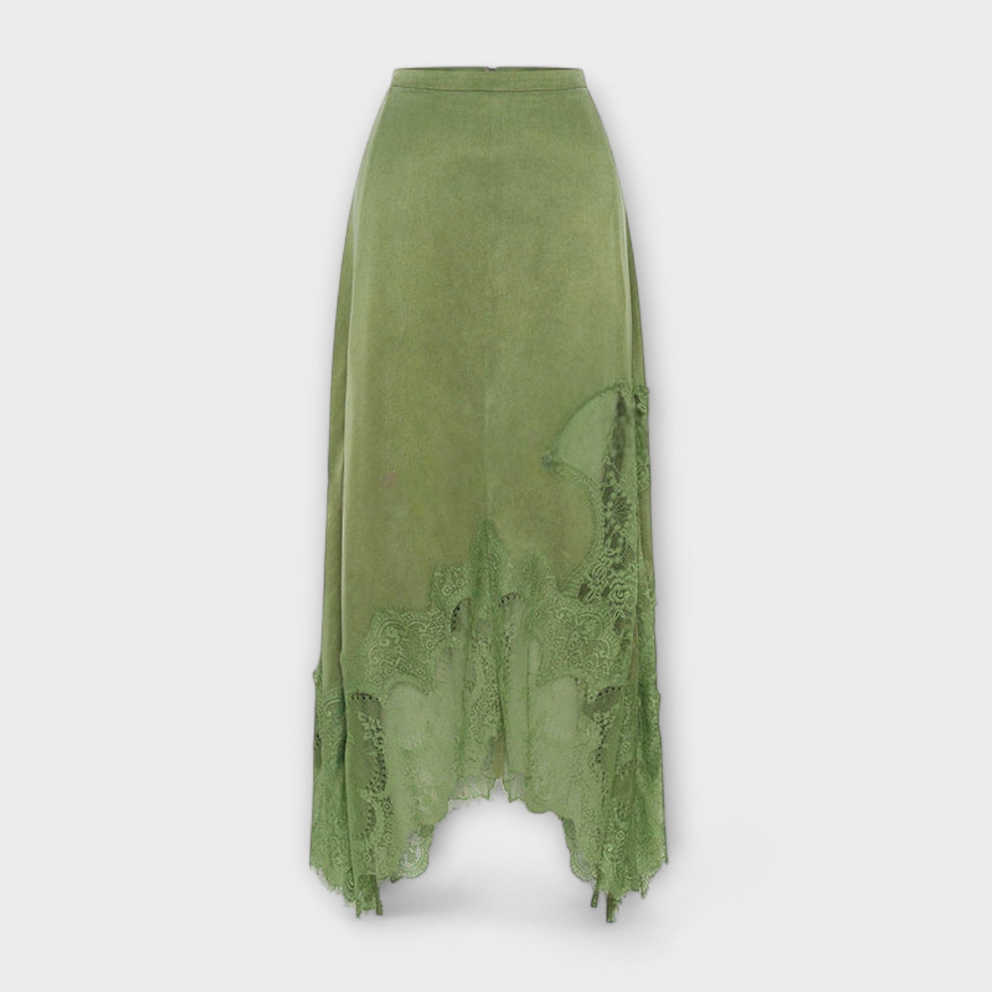 Kaia - Satin Blouse with Lace Trim and Pleated Neckline Set