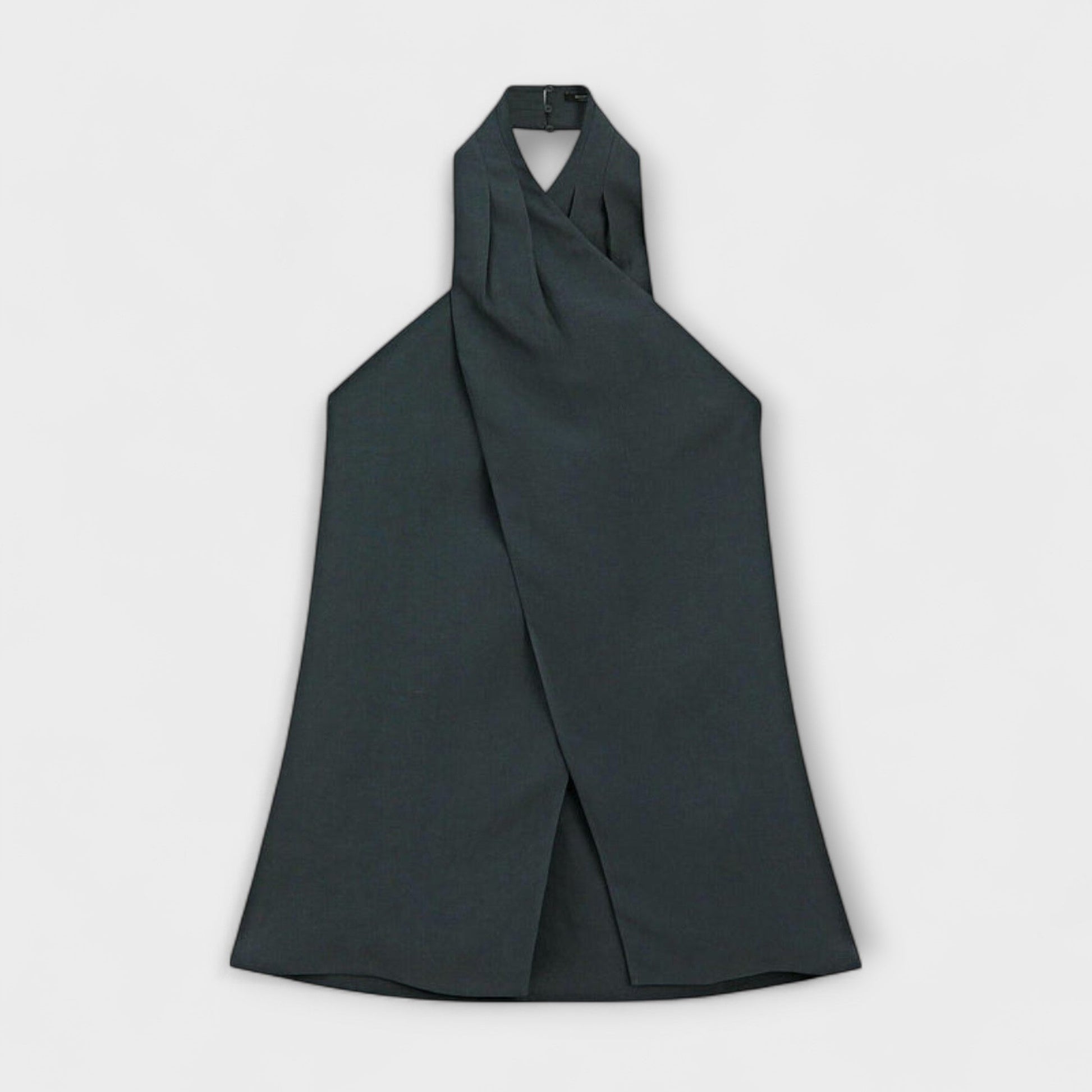 Leah - Blue Halter Neck Top with Back Cutout Design