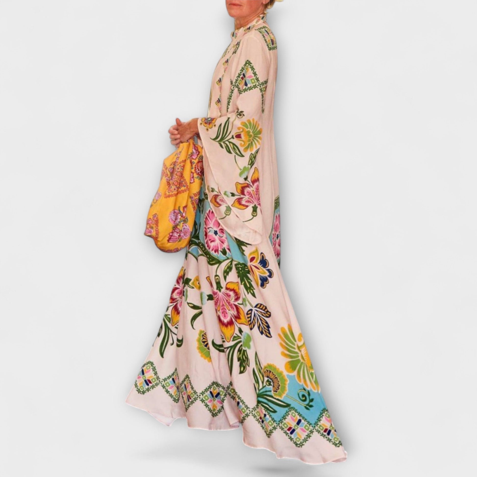 Alondra Long Dress with Fantasy Floral Print and V-Neck