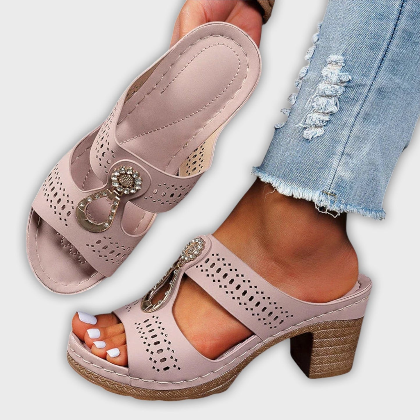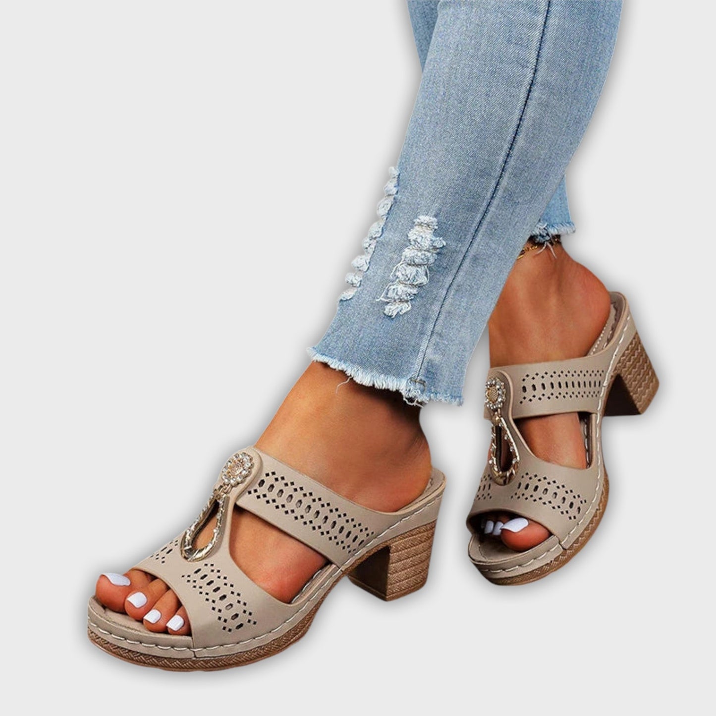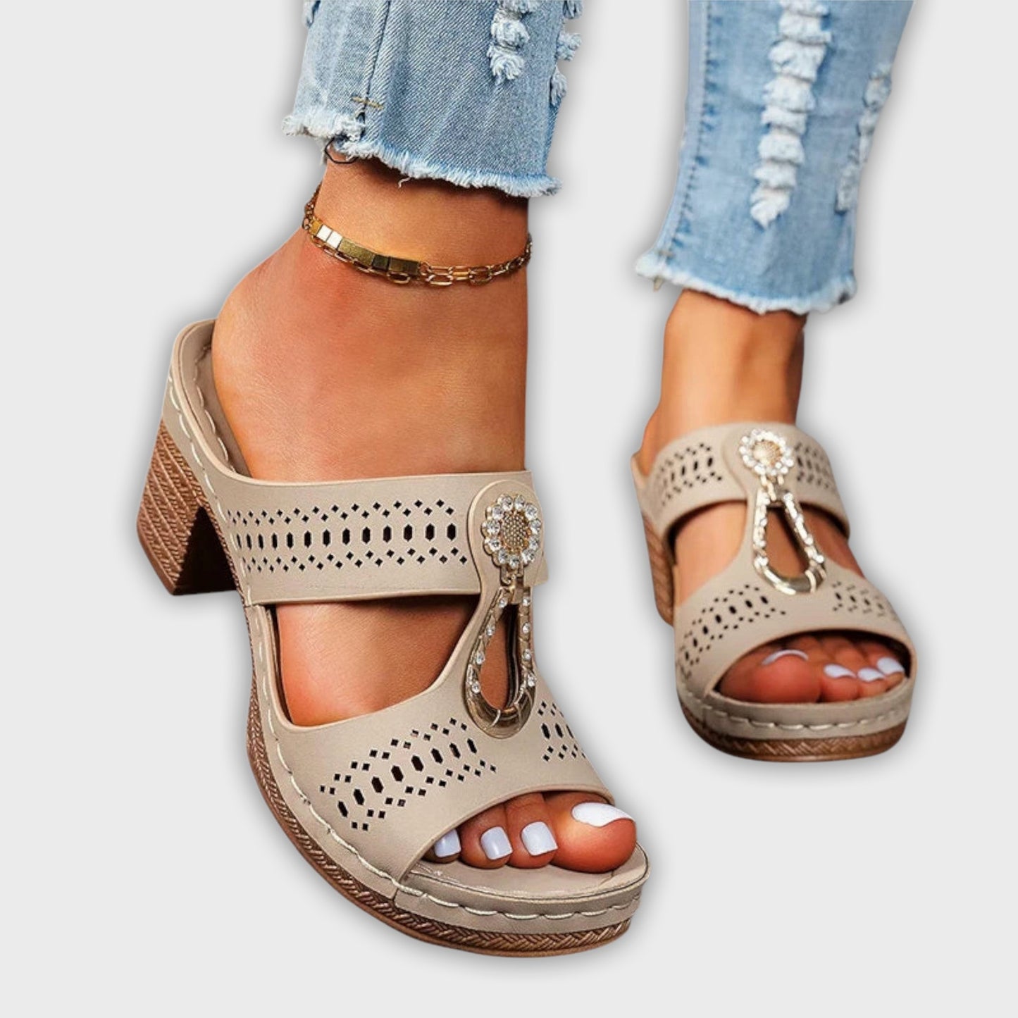 - Refined Elegance: Featuring shimmering decorative stones and a stylish cut-out design, the Maria sandals go beyond traditional footwear. They elevate any outfit and make you feel sophisticated and fashionable.