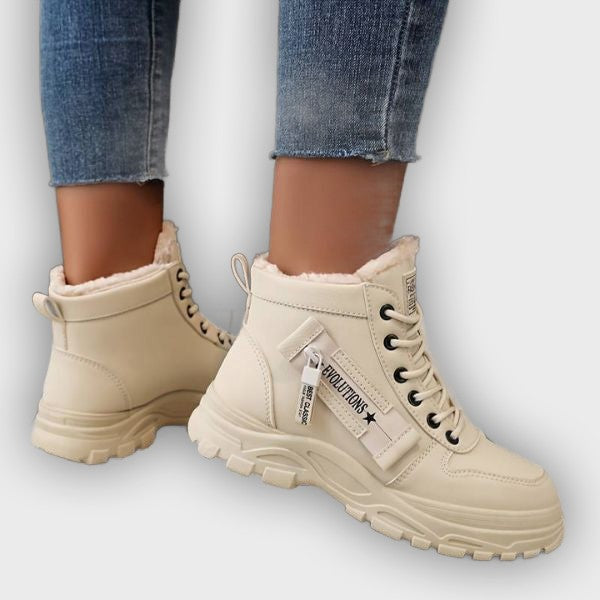 The Nyra - Casual High-Top Ankle Sneakers are the perfect blend of warmth, comfort, and style. Designed to keep your feet cozy during chilly winter days, these sneakers are ideal for everything from school runs to holiday shopping. With their stylish design, they can easily be paired with jeans or leggings, making them a versatile addition to your winter wardrobe.