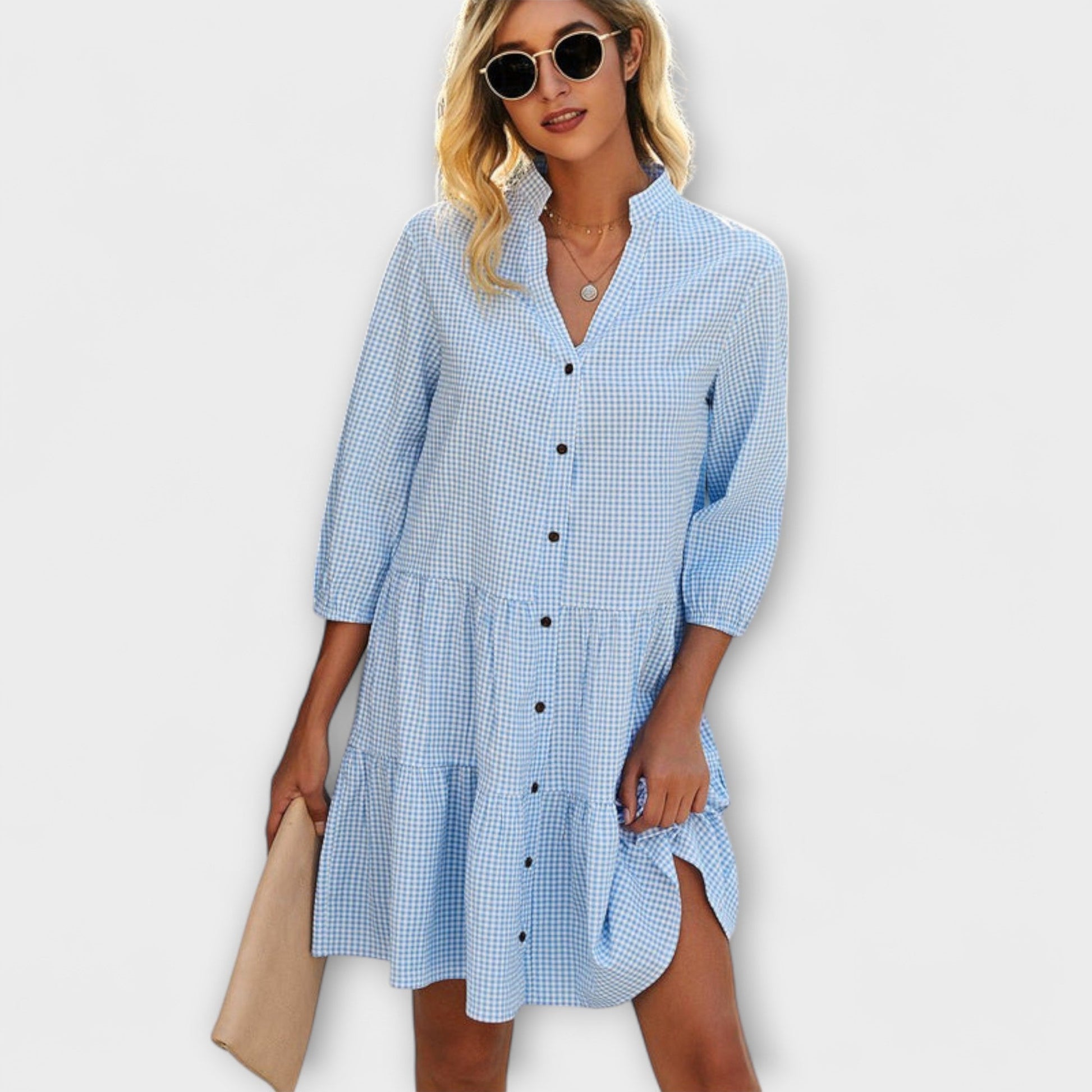 - Timeless Check Pattern: A chic blend of soft blue and white checks that brings vintage charm to your wardrobe.