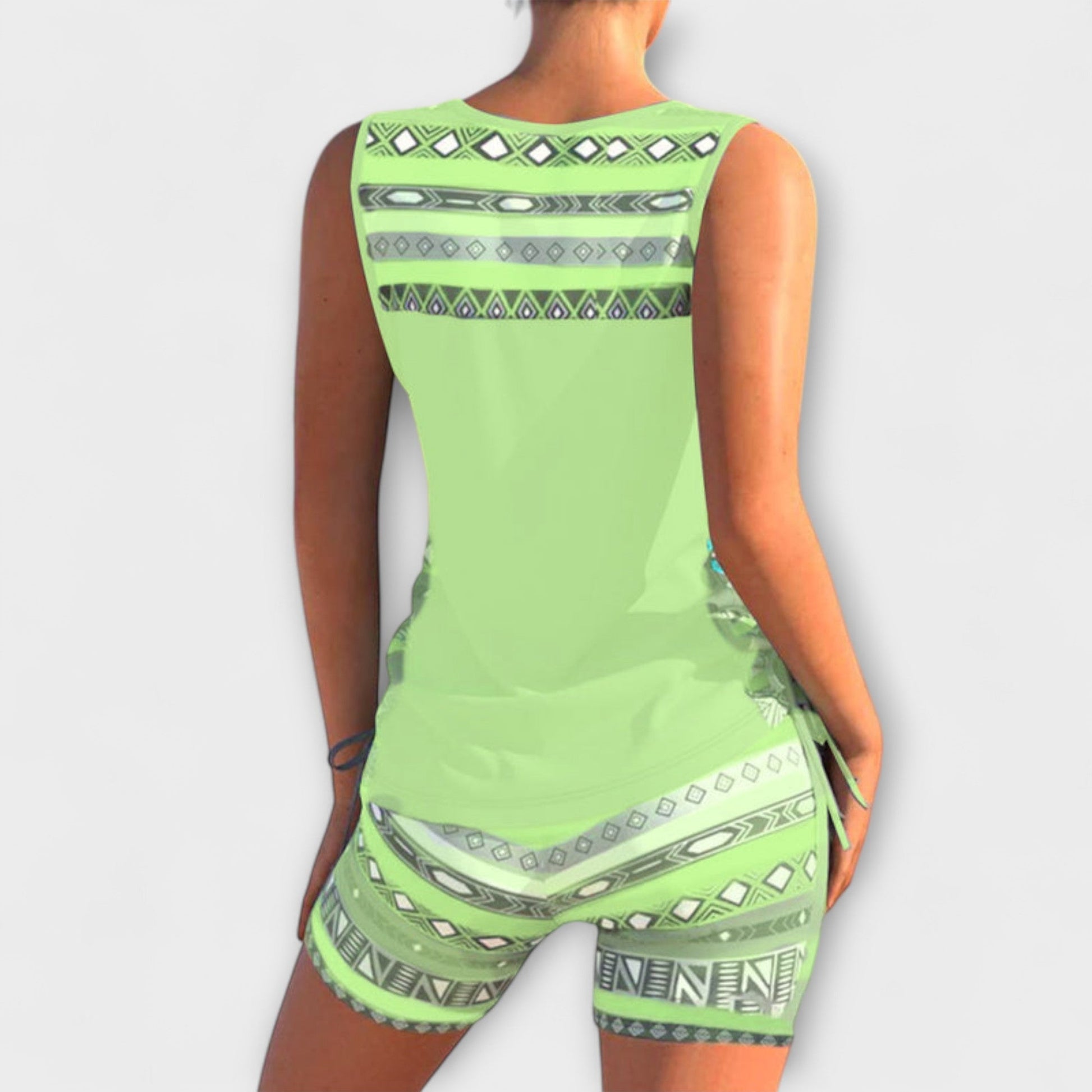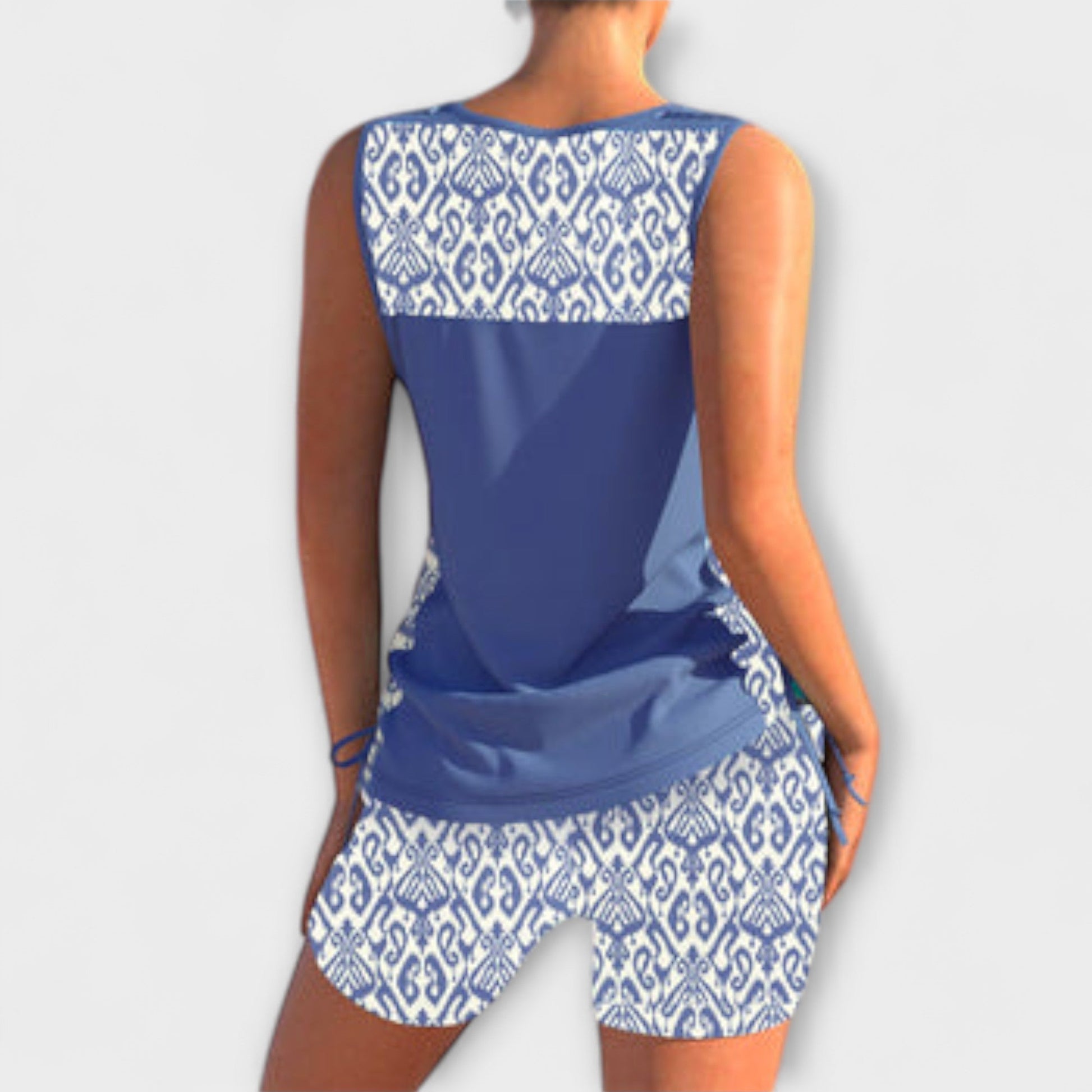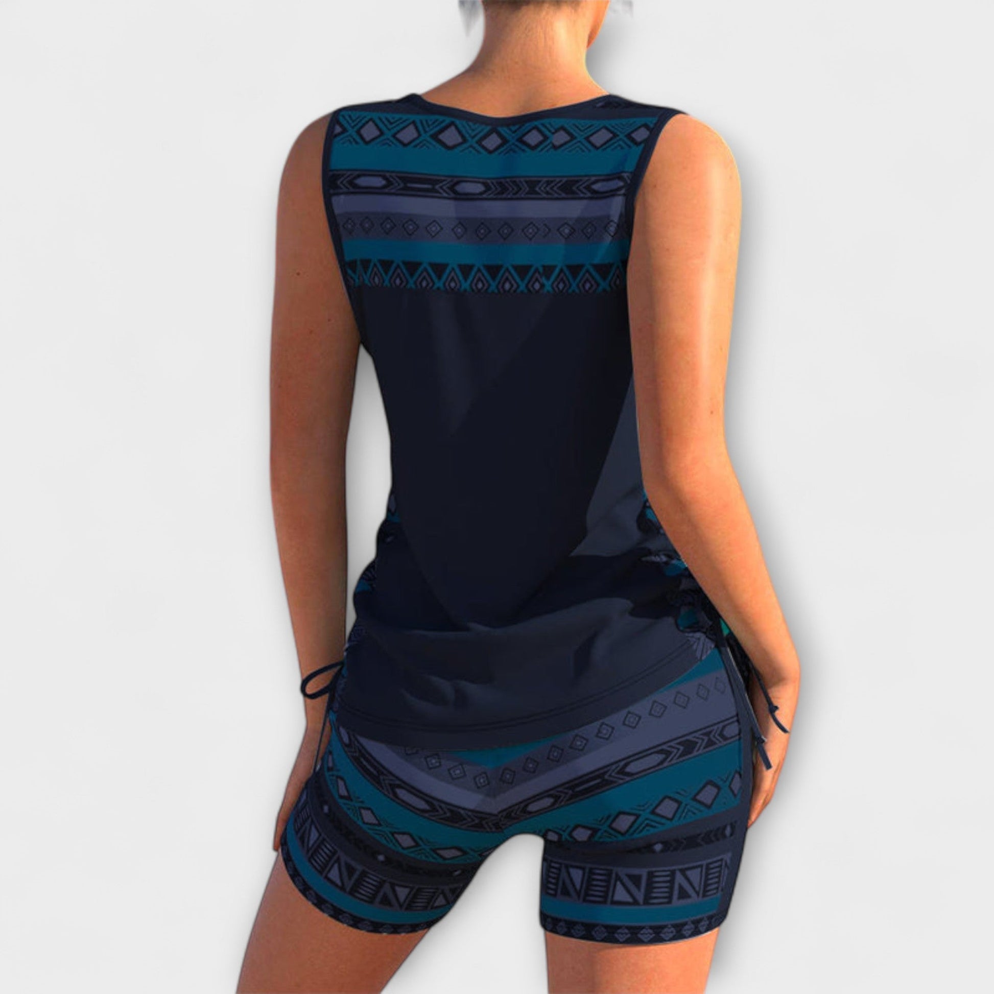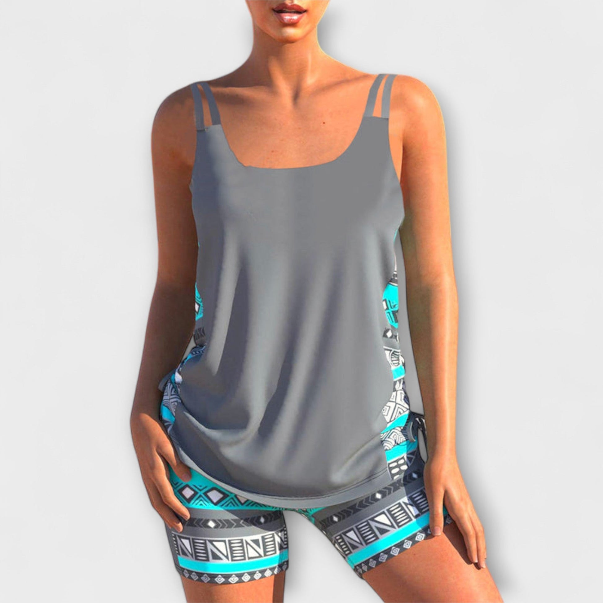 Discover the perfect blend of elegance and comfort with our Sylvia Geometric Print Tankini, designed to be your go-to swimwear for all summer adventures.
