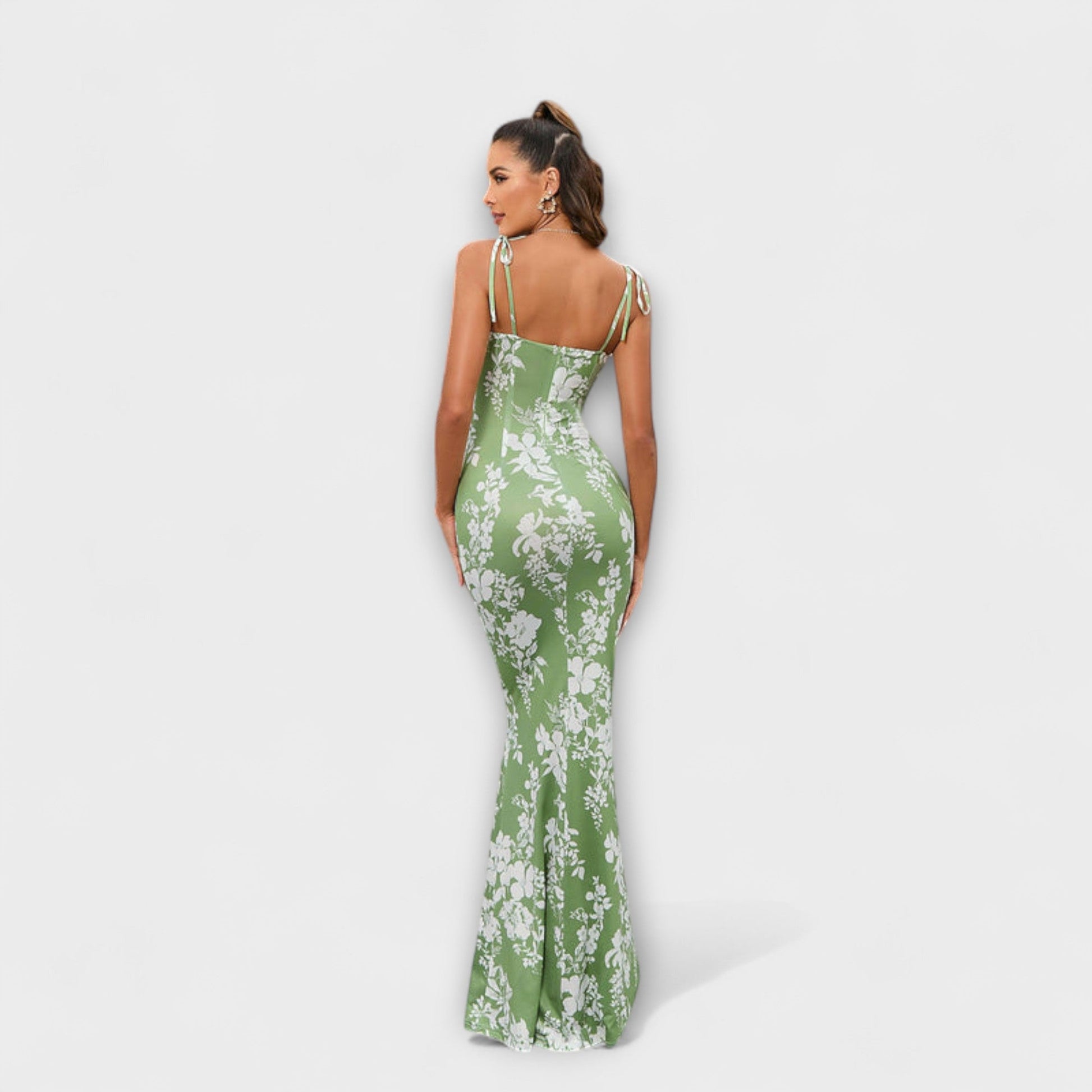 Thalia - Floral Print Prom Dress with Tied Shoulder Straps